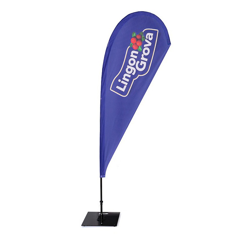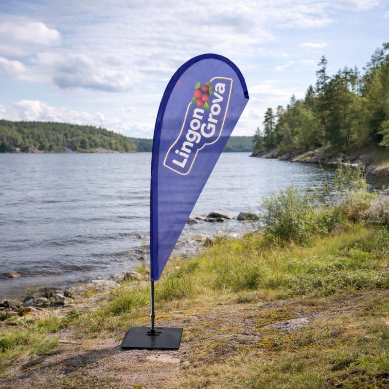 Beachflaggan är perfekt för olika utomhusevenemang, men fungerar även bra på mässor. Flaggan är lagom stor och den sträckta duken gör ditt budskap synligt, oberoende av väder och vind.