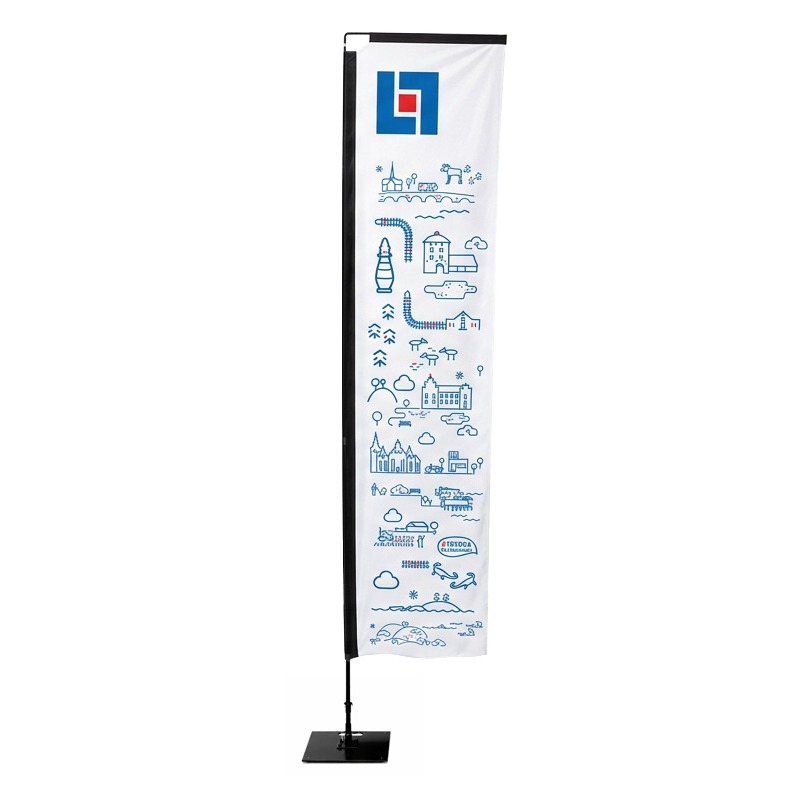 Beachflaggan har en imponerande höjd som gör att den syns på långt avstånd. Flaggan passar utmärkt vid utomhusbruk, exempelvis utanför affärer för att locka till sig uppmärksamheten.