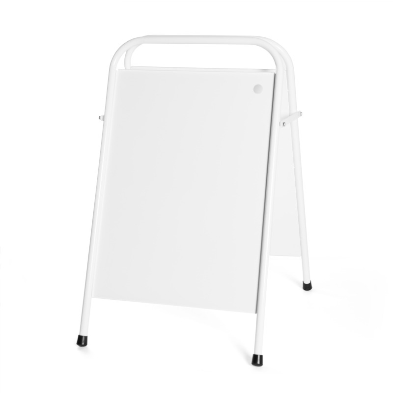 Easy Sign i vit är en av våra mest populära gatupratare med en ren och ljus design. Den vita finishen ger ett fräscht och neutralt utseende som smälter väl in i många olika miljöer. Precis som namnet antyder är denna gatupratare både lätt och användarvänlig. Den lätta konstruktionen gör den enkel att flytta, och magnetfönstret gör det enkelt att byta budskap.