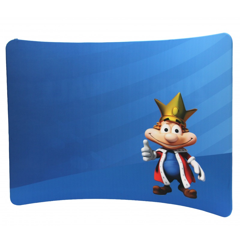 Mässvägg Zipperwall är ett dubbelsidigt system med printad bildvåd på både fram- och baksida. Storleken är 300x230 cm och du väljer själv om du vill ha en rak eller kurvad variant. Den kurvade ställningen har ett djup på 60cm.