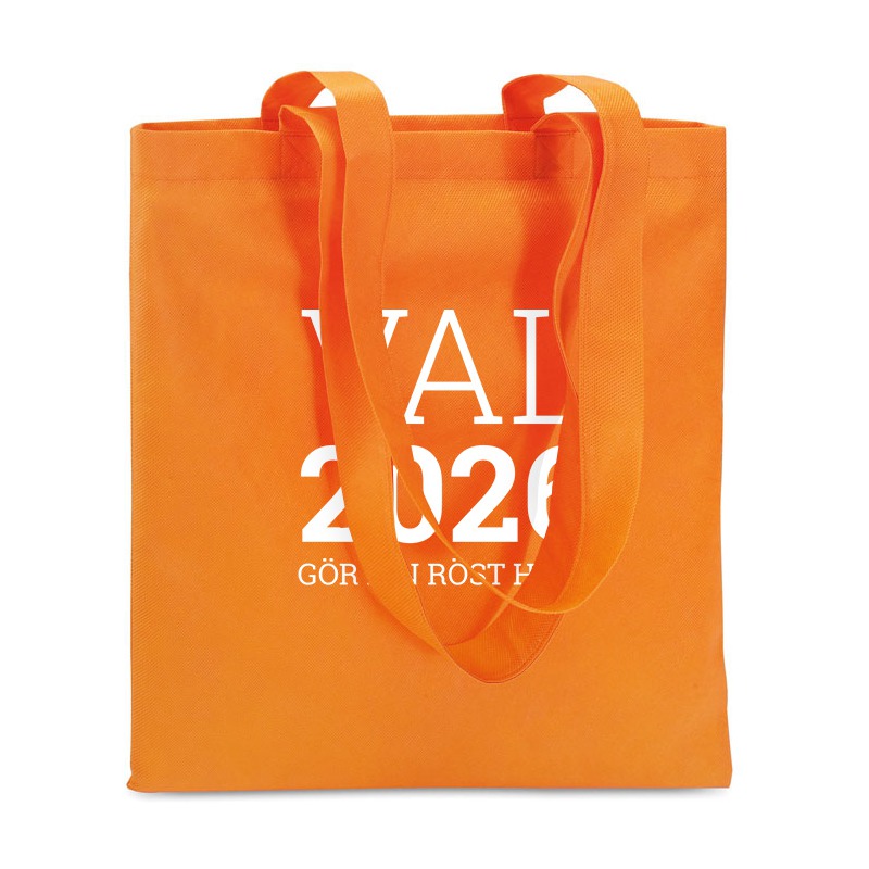 Här kan ni beställa tygkassar som är perfekta att dela ut till besökare under valrörelsen.