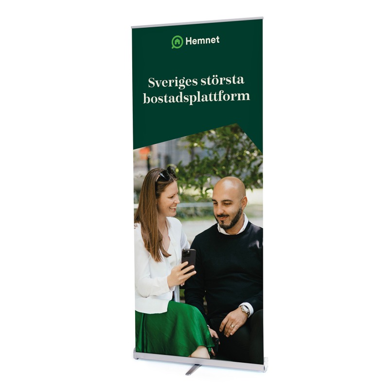 Alla våra rolluper printas på Grey Back, ett miljövänligare material med grå baksida.